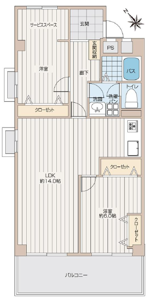 | 主要採光 | 南西向 | バルコニー | 南西向6.90㎡ |